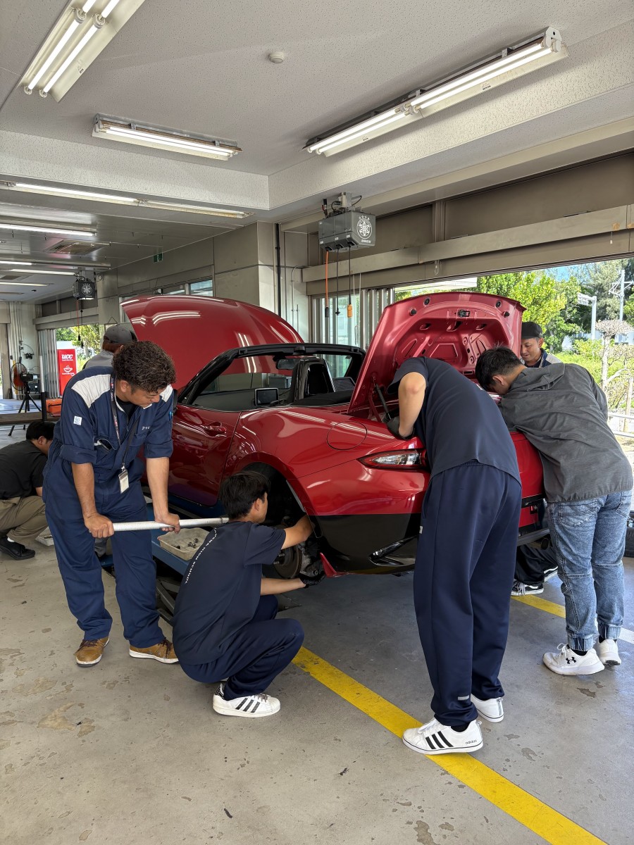 カスタム実習ではマツダロードスターを使用して車高調整&ホイール交換★
